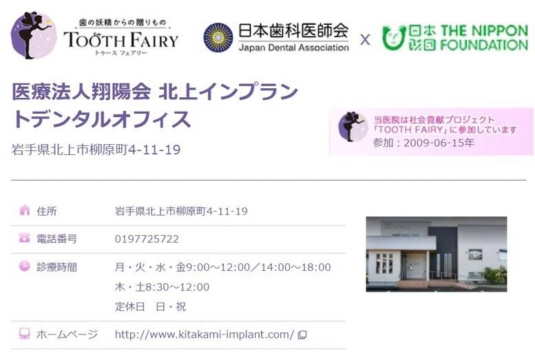 【Tooth Fairy】ご報告 2025/12/10 Tooth Fairy協賛診療所とは 平成21年以来、当院はToothFairy協賛診療所としてこの活動を支援しております。Tooth Fairyプロジェクトとは、歯科治療や入れ歯に使う金属に含まれる金・パラジウムを集めてリサイクルすることで子どもたちを支援する資金としております。この活動は、ひとえに患者さまの善意に支えられております。 Tooth Fairy協賛診療所一覧 ご支援ありがとうございます 現在、本プロジェクトに協賛しております歯科診療所は全国の20%と言われております。Tooth Fairyでは、難病を抱える子どもたちとそのご家族が直面する、医療や福祉制度だけでは解決できない課題に取り組む団体に対して、継続的に支援を行っています(※2025年12月現在)。 Tooth Fairyプロジェクト報告(2024年実績) 支援団体/14団体 支援金額/67,150,000円