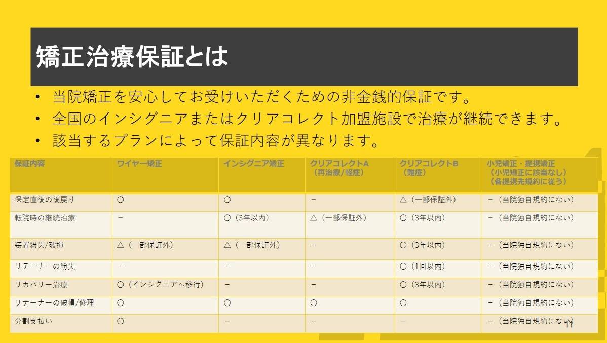 リカバリー治療保証 | 追加費用なしでの計画・装置変更 | 全額ワイヤー矯正、マウスピース矯正Bプラン等 |